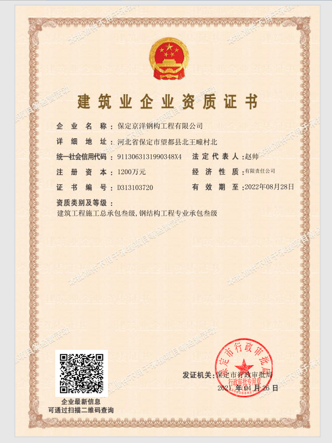 保定京洋鋼構(gòu)工程有限公司位于千年古縣望都。望都縣處于京津冀核心區(qū),是對接京津的交通要塞。距北京180公里,天津170公里,石家莊機(jī)場70公里。京石高鐵、京廣鐵路、京港澳高速、107國道四條交通大動(dòng)脈縱貫全縣。圍繞望都南北各一座高鐵站,定州站(30公里)和保定站(35公里)。京昆高速、保阜高速均有連接線,四條省級公路縱橫交錯(cuò),交通便捷。